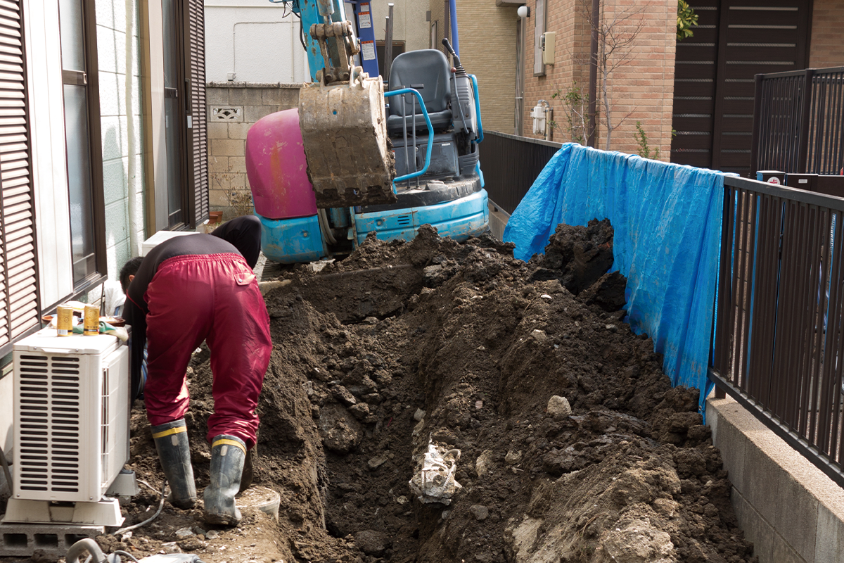 道路の下に整備された上水・下水道管の取り替えや新設工事などを行います。